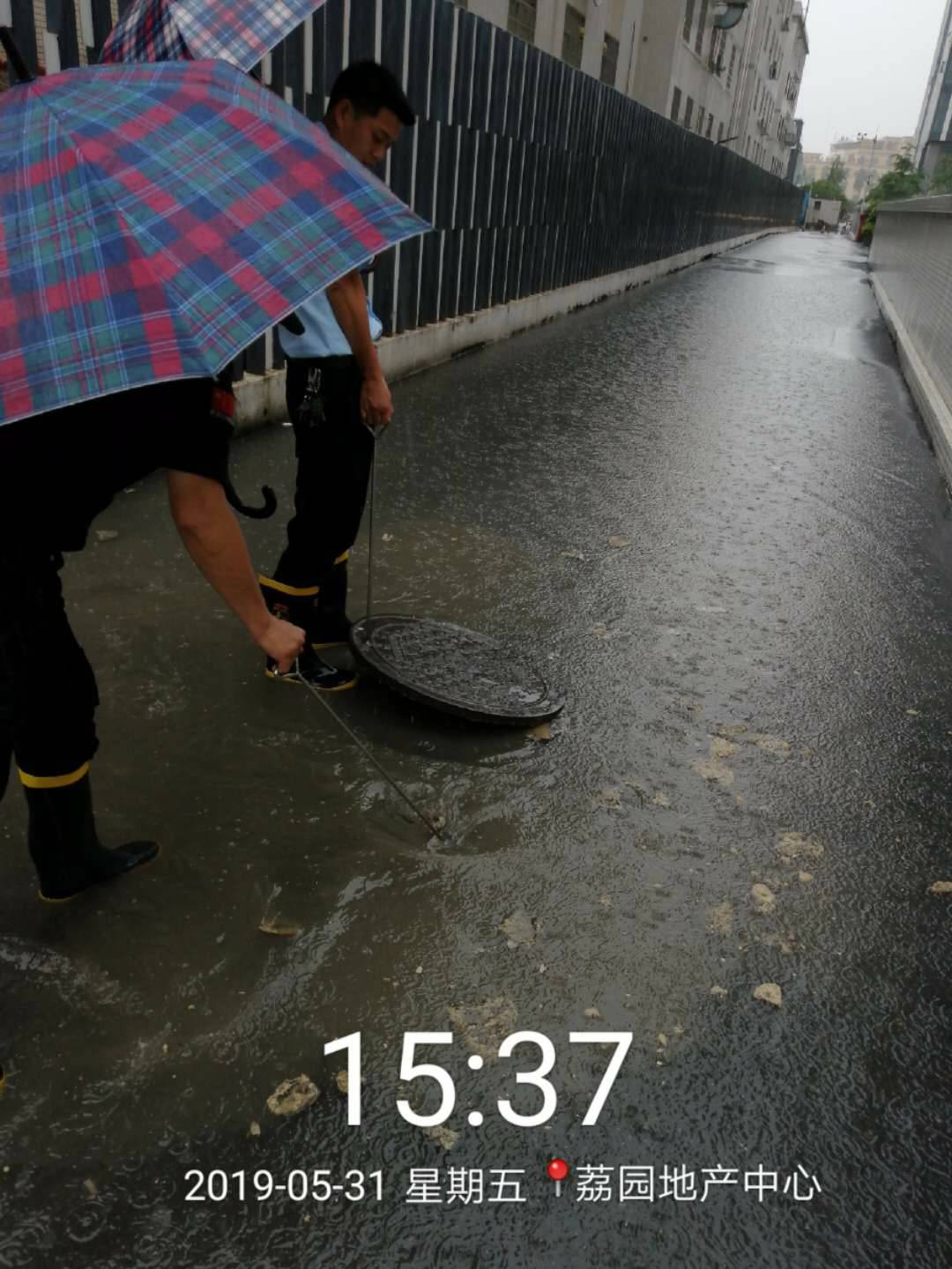 安保是物业公司的重要管理部门,肩负着小区的治安、消防、监控、车场管理等多项安防工作。在广州这段梅雨季节以来自古依水而生、临水而长经常面对水患。我团队本着预防为主、防治结合”的治安管理方案中,检查消防栓,疏通下道,作好每一件事,站好每一班岗,确保了小区的安全并通过日常的服务与沟通!